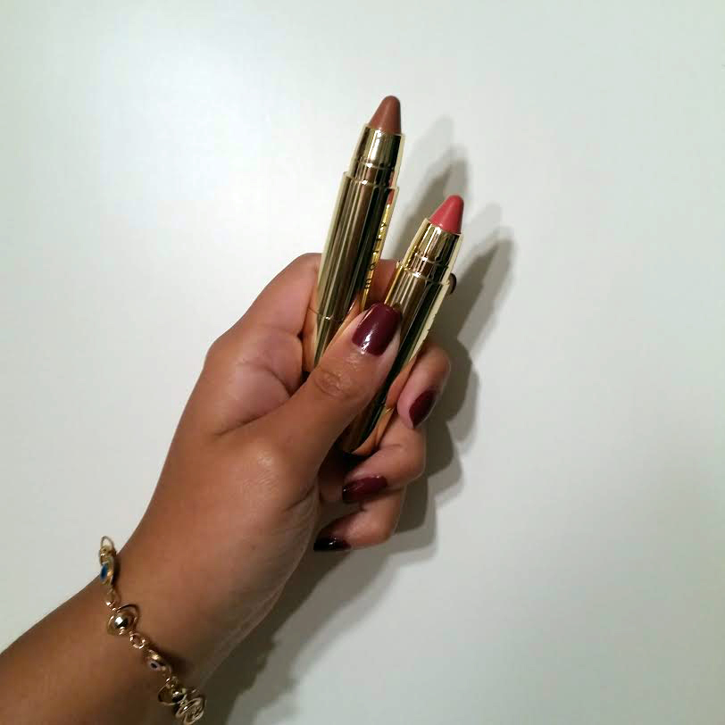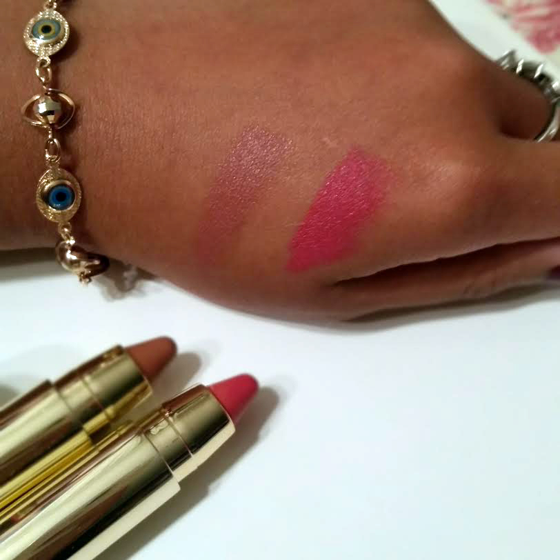 Uncapped and swatched. I’ve got a bit a tan since the last post! The creamy lipsticks boasts a high pigment and will make your lips look luscious and sleek. Give yourself a bright coral lip or opt for a neutral nude with the duo. The rich and luxurious color offer a shine and fullness that will give you an enviable pout every day.