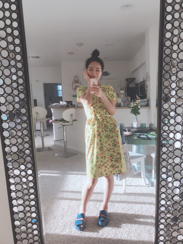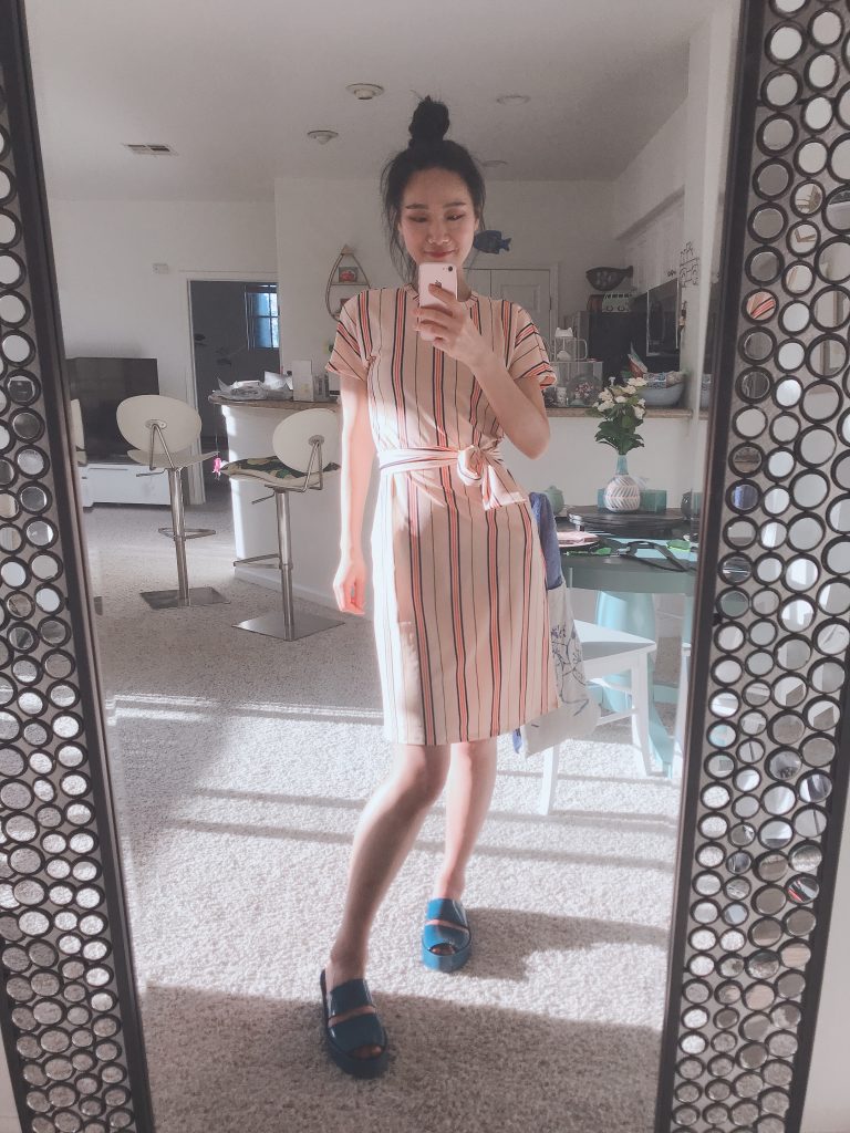 My personal favorite is this bright yellow flower dress and peach color stripe dress.