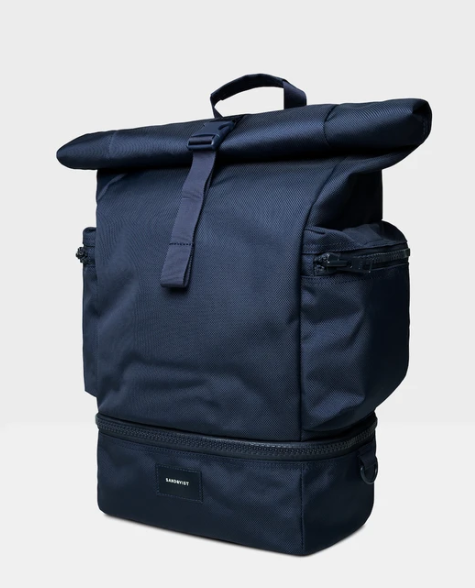 A durable backpack that is perfect for the gym or short trips, made from recycled fibers.