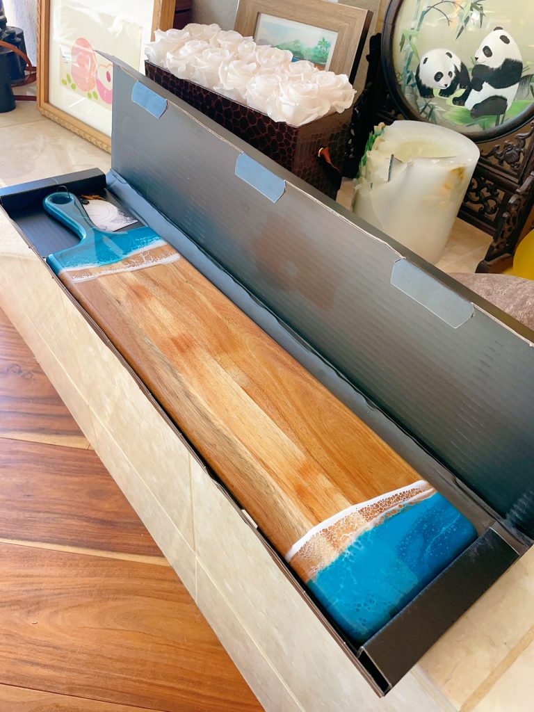 My choice – Baguette Acacia BoardsThese pieces blend gorgeous Acacia hardwood and an eco-friendly epoxy to create a one-of-a-kind piece of serveware for your home. These baguette boards are perfect for serving a group of 3-5 people.