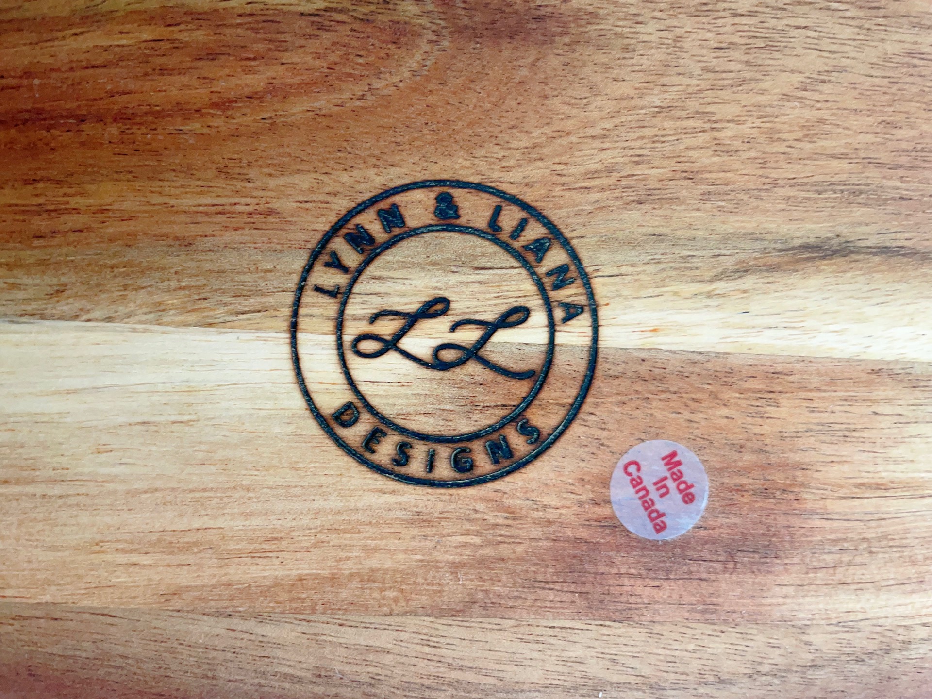 To keep your cheese and bread board looking new, Lynn & Liana recommends rubbing a food safe oil onto the wooden surface monthly or as needed. Food safe oils include, the in house Lynn & Liana wood oil, walrus oil, osmo oil or any other form of food safe mineral oil. You can purchase Lynn & Liana’s recommended cutting board oil on the shop now page!