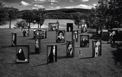 An outdoor portion of the exhibition features 28 eleven-foot-high studio portraits mounted on frames that rotate in the wind—overlooking Otsego Lake.