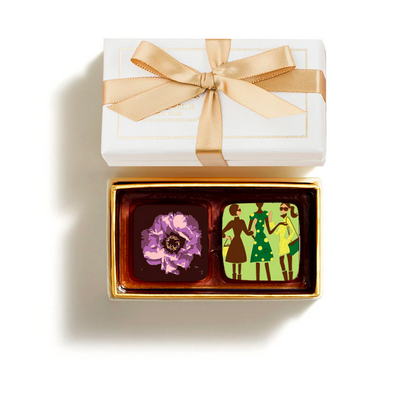 Add a hint of spring and decadence with this adorable white box that opens to reveal two pieces of MarieBelle New York ganache. Each is crafted from the finest ingredients and all-natural flavors, in particular, the flavors in this box are Lavender and Dark.