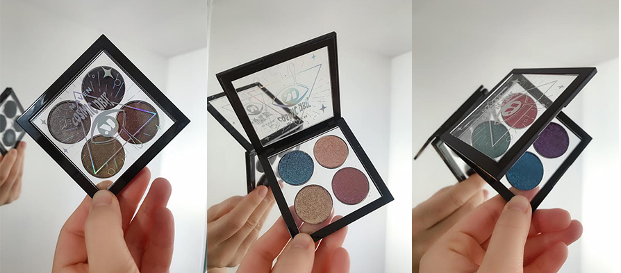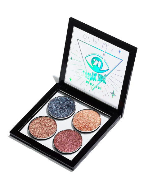 - Cosmic Drip Eyeshadow Palettes ($23) in 3 color variations packed with high intensity jewel tones and sparkly smoky metallics: Cosmos, Stargate & NovaAsteroid Tears Liquid Glitter Eyeshadow ($15) in 5 colors bursting with lustrous starry pigments and radiant pearls: Interstellar, UFO, Celestial, Supermoon & Aurora