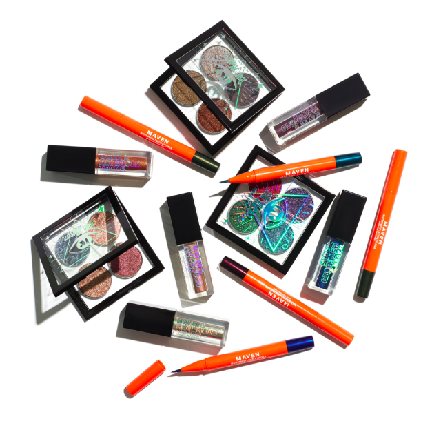 Just in time for the holidays, Maven Beauty launched a brand new Euphoria-inspired collection of bold metallics and smokey sparkles called Cosmic Drip, available beginning Cyber Monday on Nov. 30, which includes eyeshadow palettes, liquid glitter eyeshadows and waterproof liquid liners, affordably priced at $14-23.