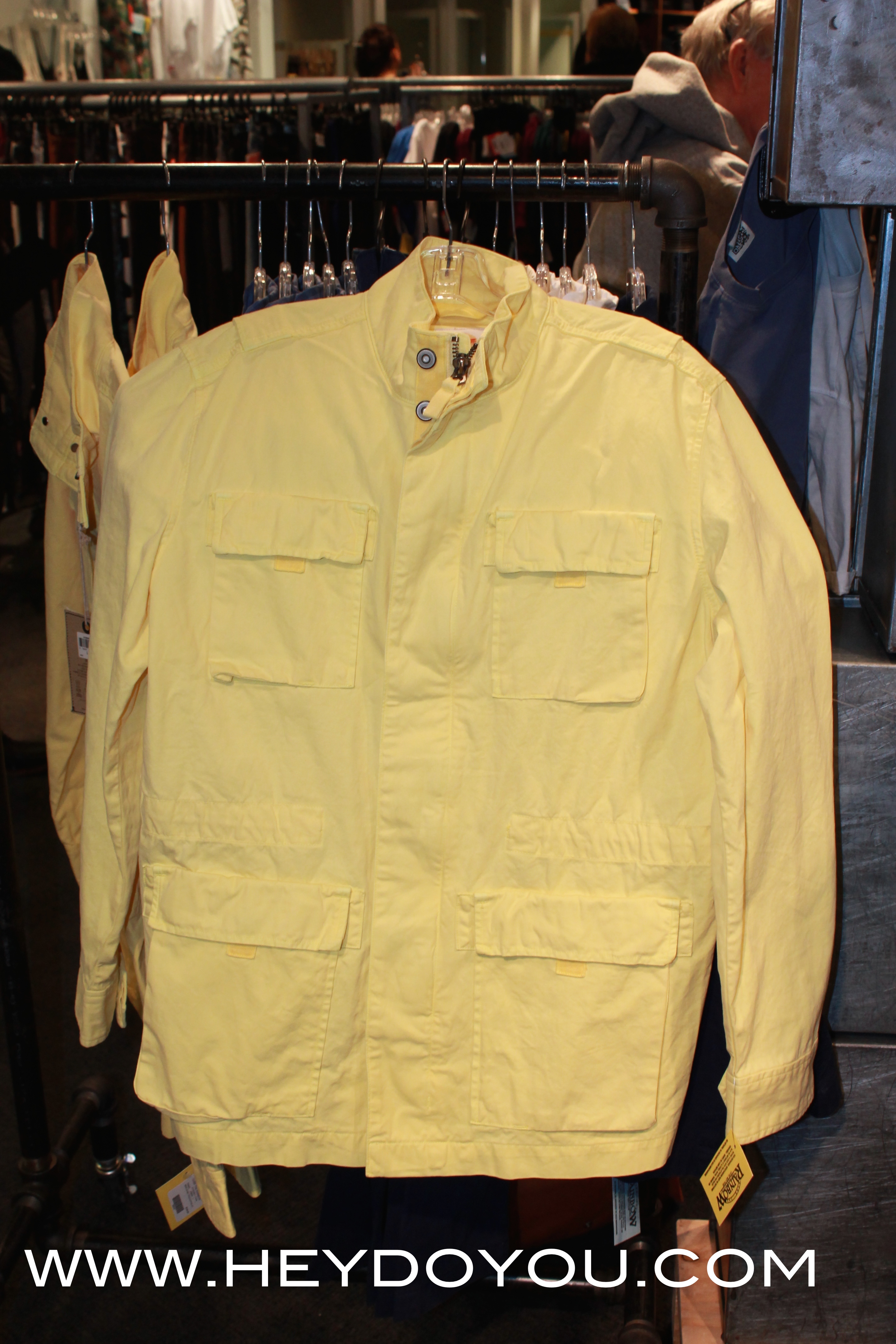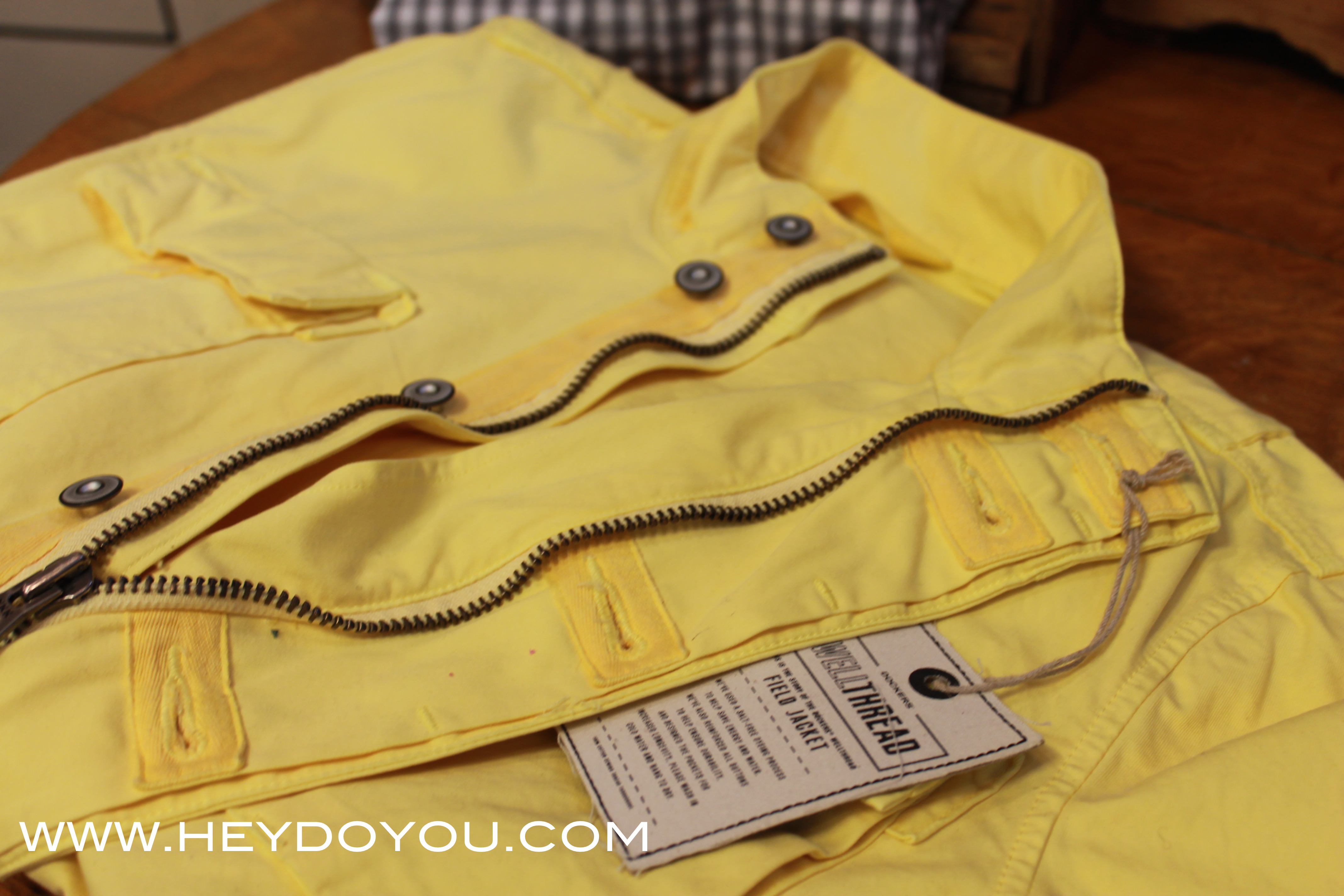 The collection includes the go-to khakis in various colours and boasts a nice selection of tees, outerwear, crew necks, button-down, and button down casual blazers; all made using sustainable design practices. I fell IN LOVE with the lemon yellow field jacket, and I know it’s made for men, but I would totally rock it!