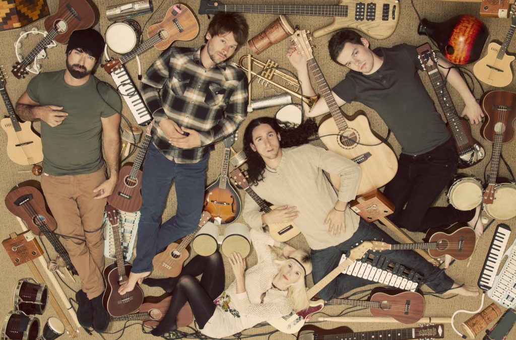 Comprised of five multi instrumentalists (Sarah Blackwood, Gianni Luminati, Marshall, Joel Cassady, Beard Guy), Walk Off The Earth originally gained massive public attention when their interpretation of Gotye’s “Somebody That I Used To Know” went viral on YouTube, garnering over 180 million views. Since then, the band has released a string of successful original songs including “Red Hands” (#1 at AAA), “Fire In My Soul” and “Rule The World” (both of which went platinum in Canada); sold out venues across the globe and collaborated with some of the biggest artists in the world (Keith Urban, Snoop Dogg & Steve Aoki). In addition, they’ve won a “Group Of The Year” Juno Award and appeared on television shows such as Good Morning America and Ellen.