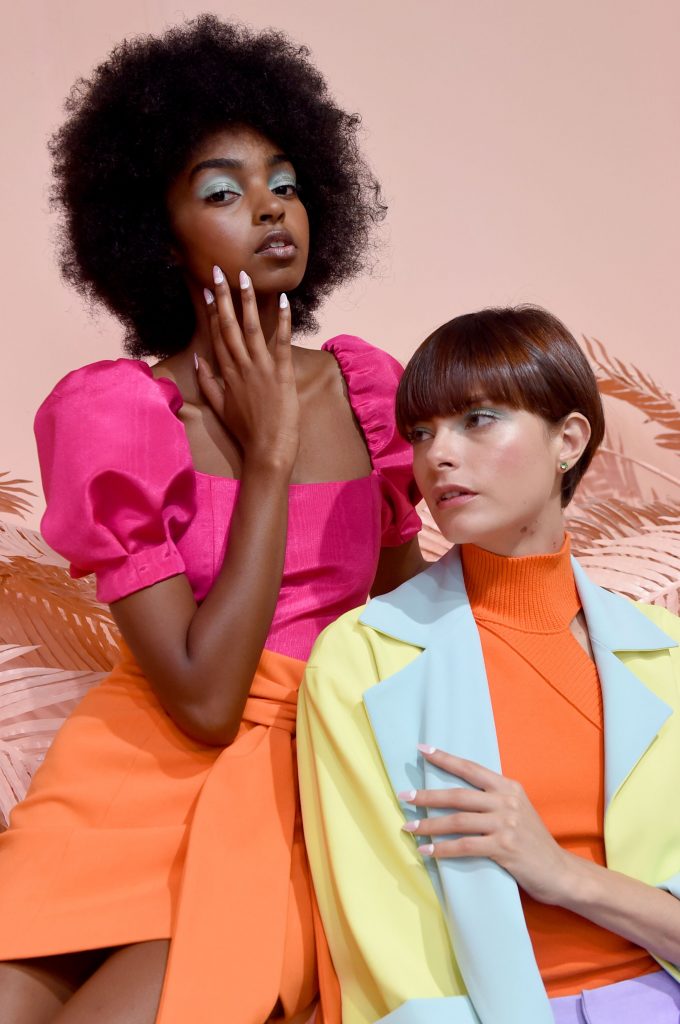 alice + olivia’s Spring/Summer 2020 presentation is a modern bohemian field of dreams. At this season’s show, designer Stacey Bendet’s fashion dreamscape unfolded in a series of nine transportive sets, each revealing a realm of the SS20 collection. In each brightly hued world, colors converse in a sherberty palette, inspiring elevated fashion right down to the fingertips.