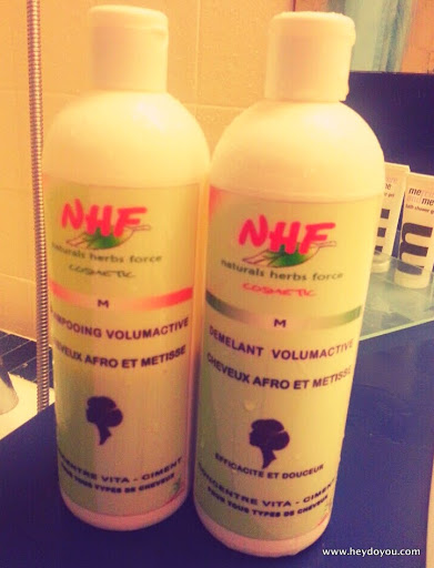 I was browsing the aisles of Ramco, a local store here in Togo that’s similar to a Wal-Mart. I came to an immediate halt when I got to the hair care aisle… my favourite aisle. I noticed that they have loads of natural hair care products, and when I say natural, I mean these products contain all natural ingredients, no chemicals. I had to stop myself from buying everything off of the shelves, and instead decided to treat myself to a shampoo and conditioner by Natural Herbes Force (NHF). I stopped using shampoo a couple of years ago, as I found it made both my hair and scalp really dry. Instead I use conditioner to wash (co-wash) and condition my hair, but I bought the NHF shampoo because I’m honestly so tired of the baking soda method to clarify my scalp when I have build up. Totally over it.