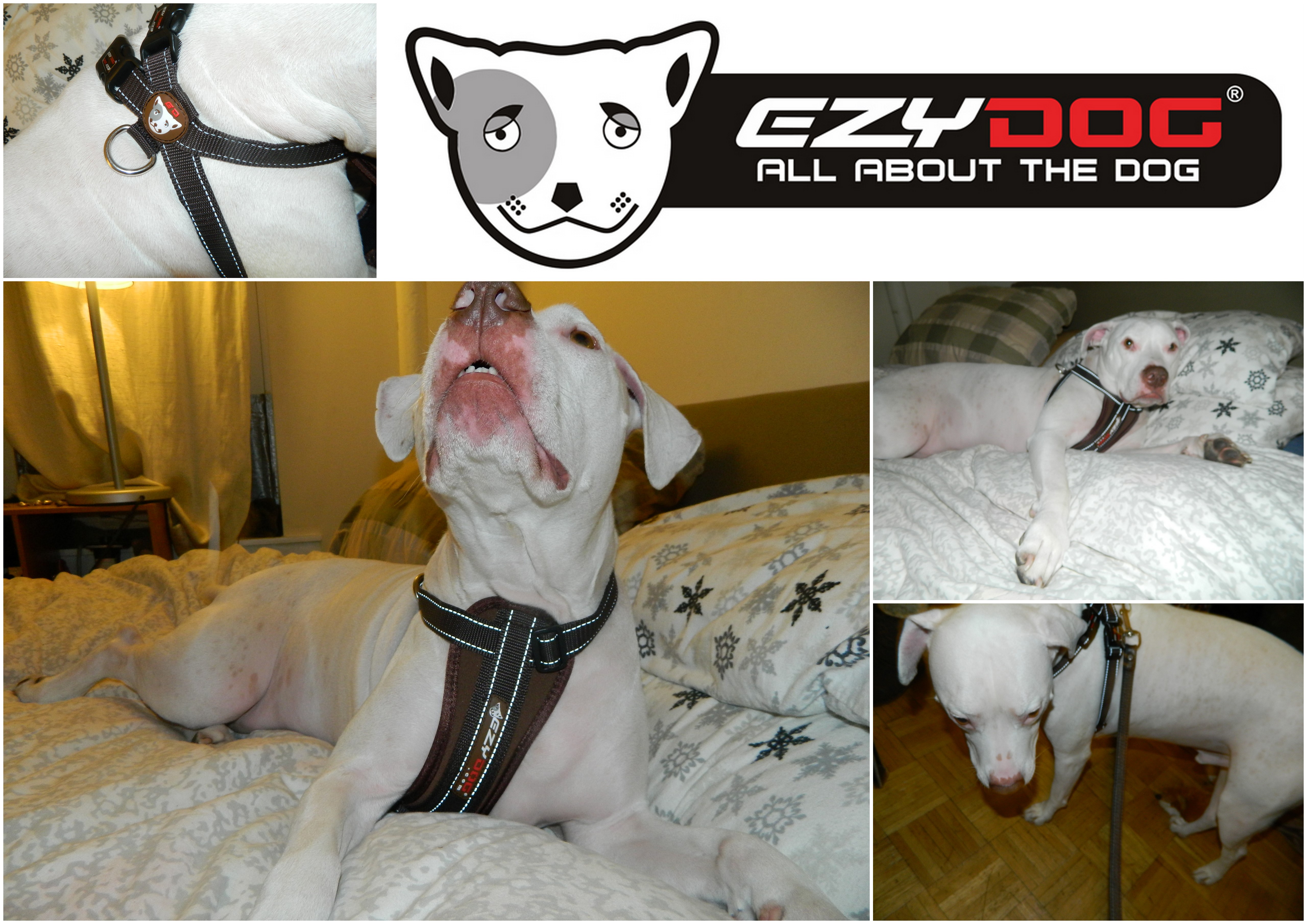 Life is never “easy” for any bully type dog. First they are stubborn and hard to train by nature. Second, they always toe the line of the most loved and the most hated in from everywhere in the media to the dog world to the dog parks. To make your life a little bit easier as a dog owner – EZYDog has come up with some of the most innovative, fashion forward and sporty accessories for your pup! EzyDog is the maker of the Original Shock Absorbing Leash as well as the Award Winning Chest Plate Harness. Jacob is wearing a size large in Chocolate.
