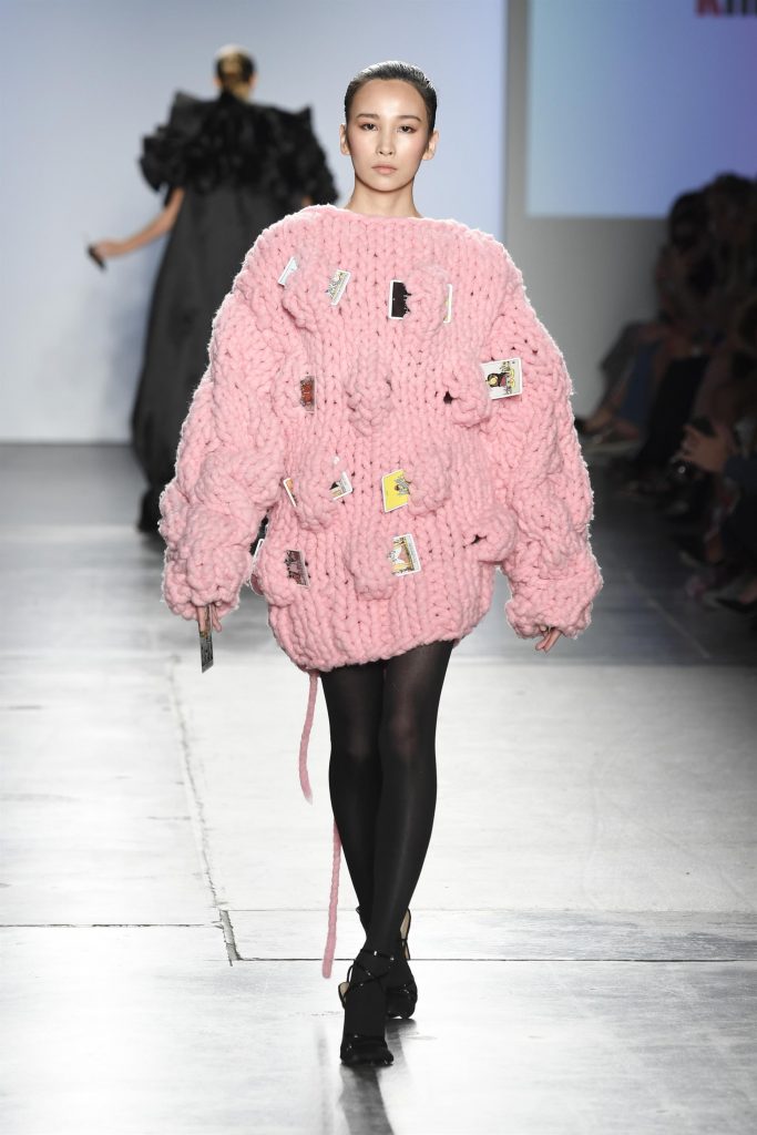 A stand out look –a candy pink oversized woolen jumperembellished with mysterious tarot cardsthat weave in and out of the knit. -