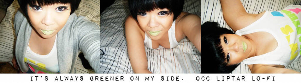 Wasabi green lips are super hot. This look is raw like yellowtail sashimi and one of my favorites from the new collection.