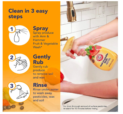With a few simple steps and the help of Arm & Hammer Fruit & Vegetable Wash you can help your family live a healthier lifestyle by removing up to 90% of pesticide residue* for a clean you can see. Just spray, rub, rinse and enjoy cleaner produce.
