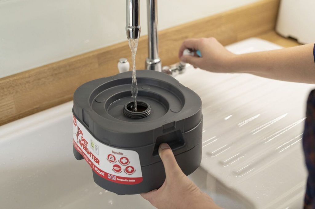 Strong and sturdy, the two-part PetWeighter Small comprises a removable, food-grade plastic bowl on top of a base that can be filled with sand, water or a combination of the two. This means the bowl will not move when a dog nudges it, and stops the container and contents from traveling across the kitchen or garden. It will also stay put if a clumsy human kicks it by accident or a mischievous child knocks into it while playing on the floor.