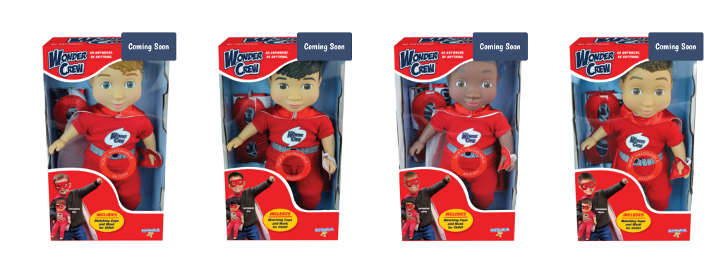 “We are thrilled to bring Wonder Crew into the PlayMonster portfolio,” said Bob Wann, Chief PlayMonster of PlayMonster LLC. “We know from consumer research that boys ages 2 – 5 are already playing with dolls, yet there is a distinct hole in the marketplace for them. We believe it’s the perfect time to introduce this important toy line to mass market as big retailers and our industry are together breaking down gender stereotypes to help boys develop their emotional maturity including compassion and kindness.