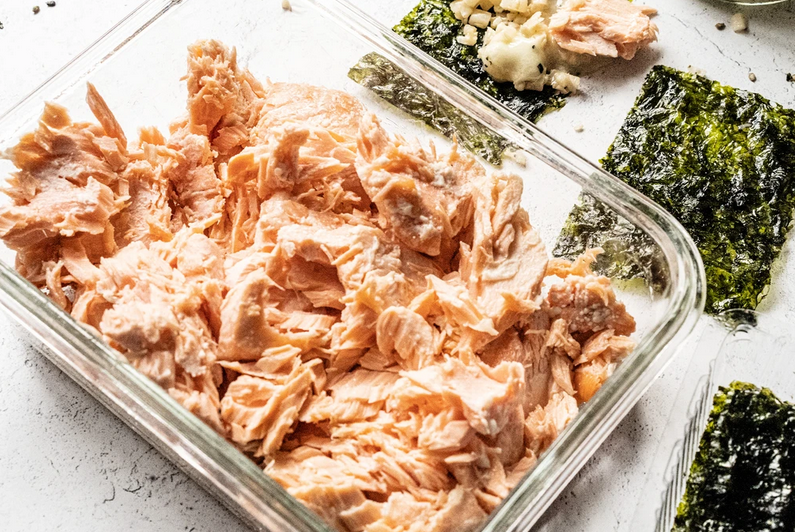 - Place the cooked salmon in a bowl and flake the filets with a fork.