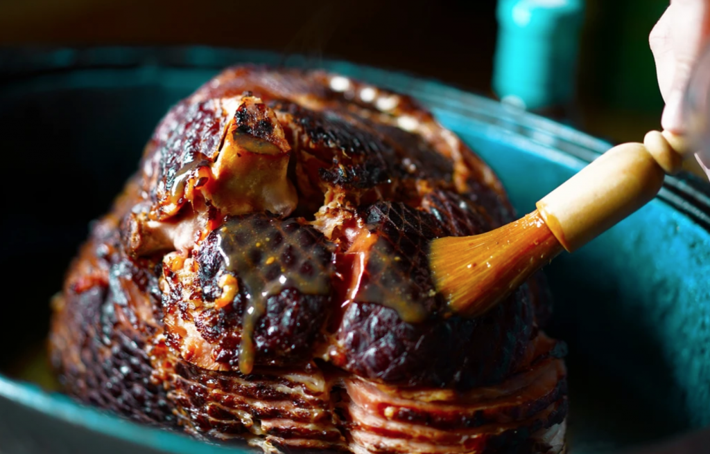 - Remove ham from oven and baste with Primal Kitchen No-Soy Island Teriyaki Sauce. Apply several coats of the teriyaki sauce to the ham. Place ham back in the oven to bake for another 20 minutes.