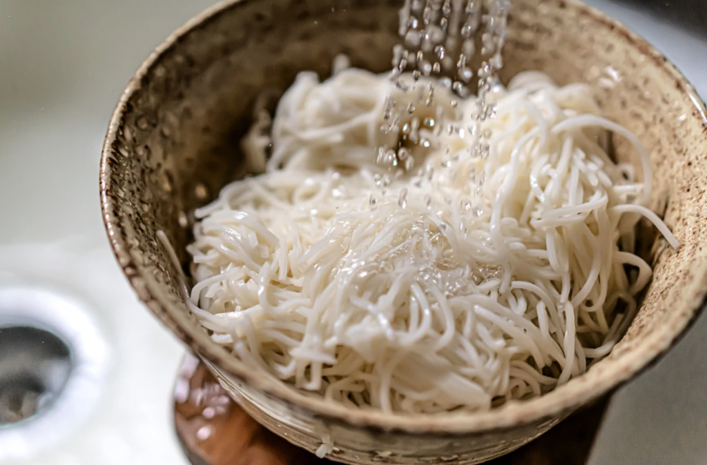- Place linguine in a colander in the sink. Drain noodles and rinse well, allowing all water to drain after rinsing.