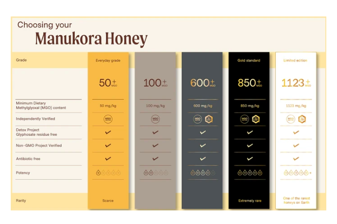 All the different numbers and ratings found on Mānuka Honey can be confusing. That’s why Manukora created this great MGO chart so you can see what the different numbers on the jars mean and how this affects their rarity and potency. The simplest way to remember how MGO works is ‘the higher the MGO, the higher the potency, and the higher the natural benefits’.