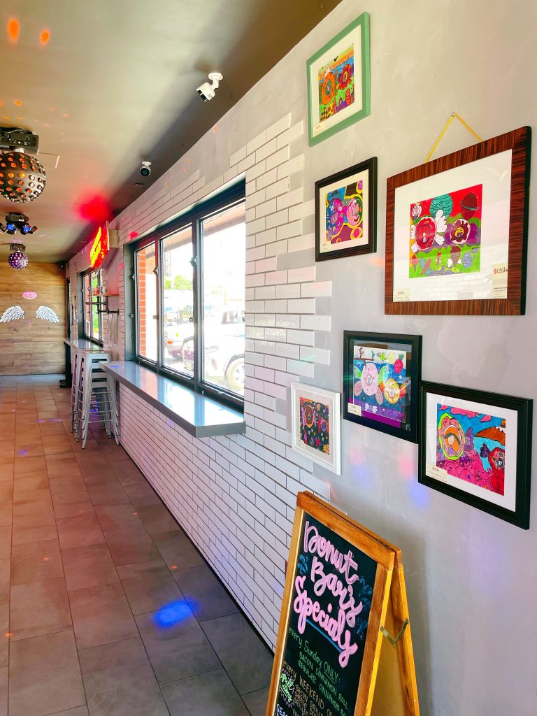Flying Donut Art Show at Donut Bar Pacific Beach by Kids from US Arts Education Center