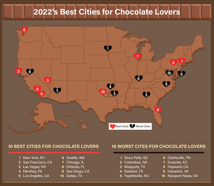 Melt into International Chocolate Day on Sept. 13 with the city rankings and analysis below.