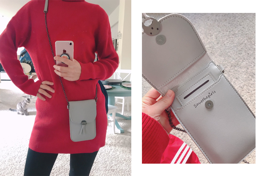 - The phone card can be removed, and the strap worn with other bigger bags also,