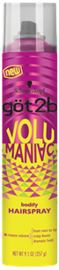 Schwarzkopf göt2b Volumaniac Bodifying hairsprayThis volumizing spray immediately locks in volume with enough hold for that drama that you crave. How to use: Hold 8-10 inches from hair. Spray evenly over hair for an all over hold or spot spray and use hands to create extra volume. Re-spray after styling to hold dry finished style.