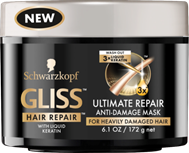 GLISS™ Ultimate Repair Anti-Damage Mask uses a high-performance formula with 3X liquid Keratin to precisely repair damaged hair and replaces lost Keratin leaving your hair restored and combable.