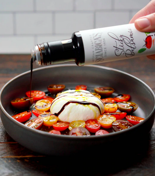 And about the Sticky Balsamic, indulge your taste buds with this perfect balance of sweet and tangy, accented by delicate hints of caramel, honey, fig, and ripe raspberries. The creamy-thick consistency of this versatile ‘sticky’ balsamic vinegar makes it a joy to use for decoratively drizzling over seared veggies, cheese, fruit, salad, and even desserts. Add superbly rich taste while dressing up your grilled meats and poultry. It’s the simplest way to decorate like a pro and enhance flavor… the delicious possibilities are endless!