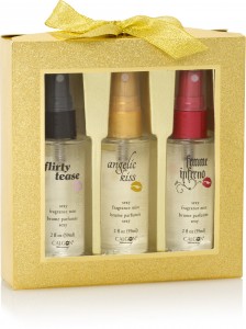 I also got to try out a cute trio of mists that can make a great affordable gift. The Sensual Mist Gift Set is also part of the Sensual Collection. It includes Flirty Tease, Angelic Kiss, and Femme Inferno.