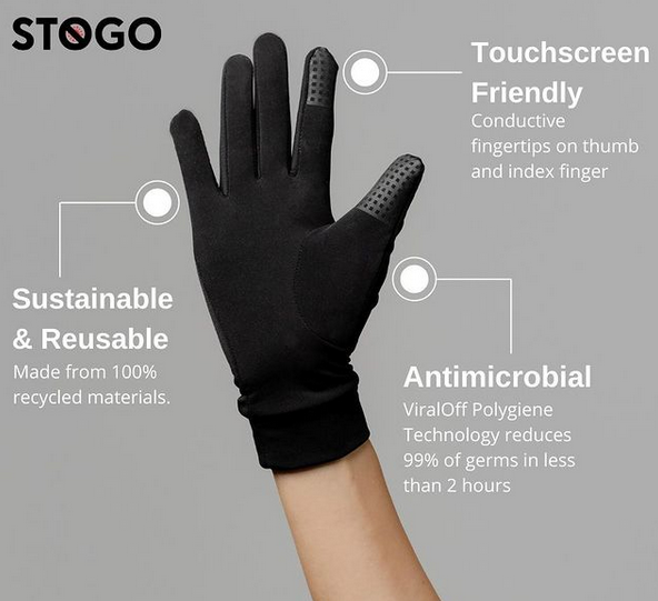 Germs can live on hands up to 3 hours! STOGO gloves use ViralOff® Polygiene Technology in this All-Day Glove to reduce 99% of germs and bacteria within 2 hours. It has been tested against Influenza A, Bird Flu, Norovirus, and Coronavirus (SARS).