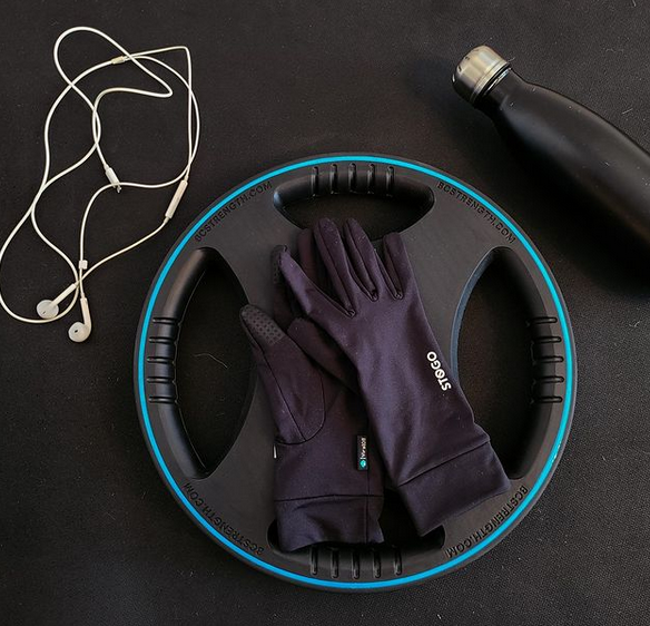Made from GRS-certified recycled polyester, these sustainable gloves offer full-hand protection from high-touch surfaces at the gym, grocery store, and public transportation (bus, taxi, ride-share, airplane).