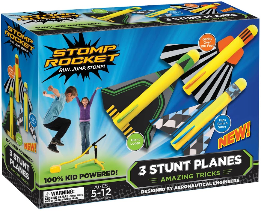 Starting in November 2017, you can find Stomp Rocket® Stunt Planes at www.stomprocket.com and on Amazon.com, Target.com, BedBathandBeyond.com and in Mills Fleet Farm stores. Other Stomp Rocket® products are also available online at BedBathand Beyond.com, and in-store at Toys R Us, Dick’s Sporting Goods and Big 5.