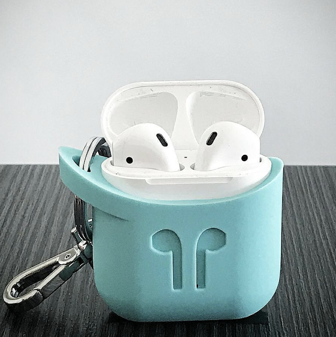 The PodPocket is precision molded from high grade silicone to provide a secure fit for the AirPods charging case that comes with a premium key ring and clasp so that it can be attached to a bag or keychain and the open access along the bottom allows charging while the AirPods are still in the PodPocket. A small investment to protect a larger one & the perfect Home For Your AirPods.