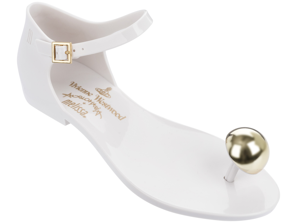 mapping/32250-50800-5-melissa- harmonic-maxi-bow#272=931 This new style is from Vivienne Westwood Anglomania + Melissa, the Honey! This new summer time staple features a futuristic design in classic color-ways for an updated summer staple. Vivienne Westwood created her own version of this Melissa Shoes already well-known model. At the hands of the Lady of Punk, Honey gets some fun colors and two different touches. In white, it has a chrome ball and in, pink, and black it has the Orbit – Vivienne’s fashion brand trademark. As is true with all Melissa Styles, this shoe is vegan, waterproof and made of eco-friendly PVC and partially comprised of recycled materials.