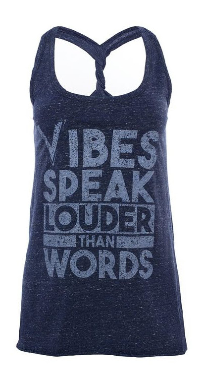 - Vibes Speak Louder Than Words Twisted Racerback ($35): You’ll be picking up good vibrations in this trendy, twist back tank. Serving as a reminder to you and a message to those around you to deal only in positive energy, this stylish, serene shirt will radiate happiness.