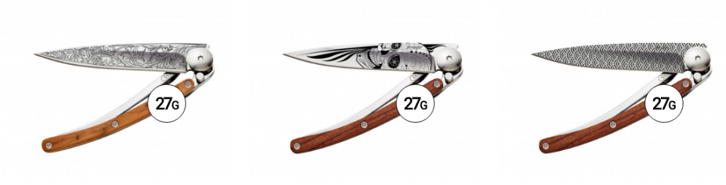 Deejo® began with a desire to rekindle the pleasure of having a knife in your pocket for wherever life may take you, but quickly became a way to express yourself and the things you admire. The Deejo® pocket knife is all about personalization. You can design a Deejo® with just a few clicks and to the finest detail, choosing from literally several thousand customization combinations to make a Deejo® that’s one-of-a-kind and personal. Choose from a variety of etched tattoos, weights, finishes and handles to make a custom Deejo®.