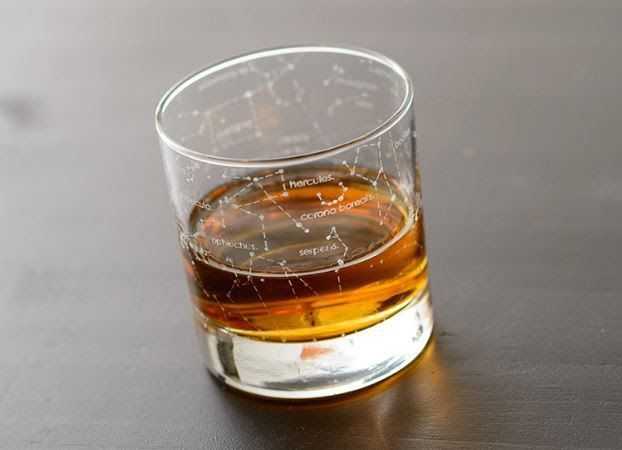Glassware collection features the starry mysteries and twinkles of summer and winter night skies across the cosmos. Each tiny star and constellation’s name is meticulously etched — rather than printed —across the entire glass.This special etching technique creates a seamless illustration of the constellations and topography in a durable work of art that will last a lifetime. From stemless wineglasses to pint and rocks glasses, this collection brings the brilliance of the universe and the craggy mountain landscapes to your next drink. Both styles range from $14-$16 per glass.