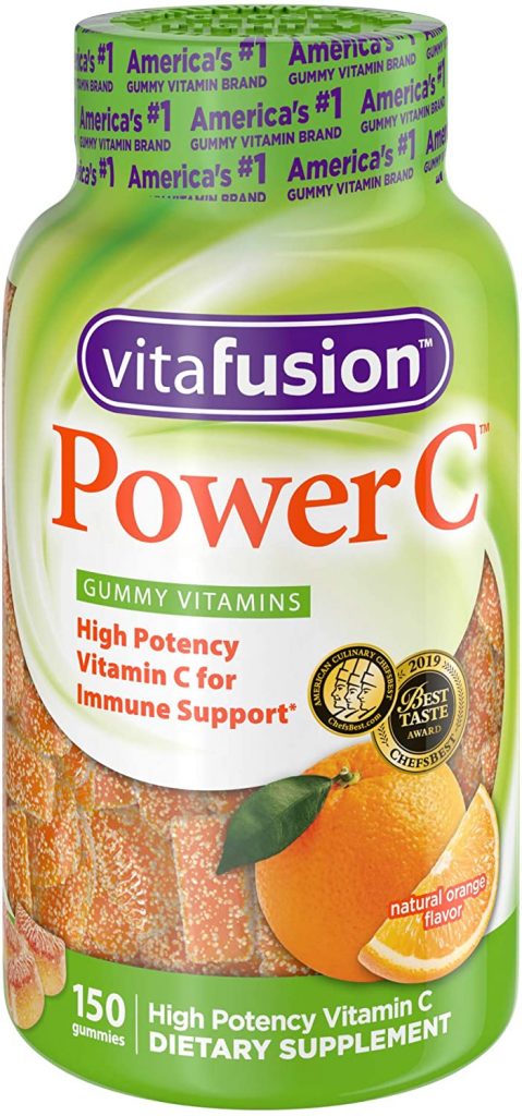 Three delicious vitafusion Power C gummies provide an excellent source of vitamin C — as much as 10 tangerines! You’ll love the natural tangy orange flavor of vitafusion Power C and feel good knowing that these gummy vitamins are helping to support your immune system.