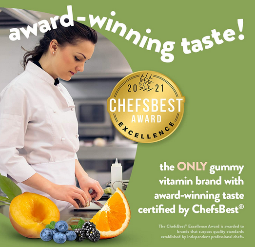 Take a fruitful step toward a healthier, happier world with America’s #1 gummy vitamin brand. Vitamin Better! For Vitamins C and D in products that contain those nutrients The ChefsBest Excellence Award is awarded to brands that surpass quality standards established by independent professional chefs. [1] These statements have not been evaluated by the Food and Drug Administration. This product is not intended to diagnose, treat, cure or prevent any disease. For Vitamins C and D Versus the leading hair, skin and nails gummy supplement per serving. -