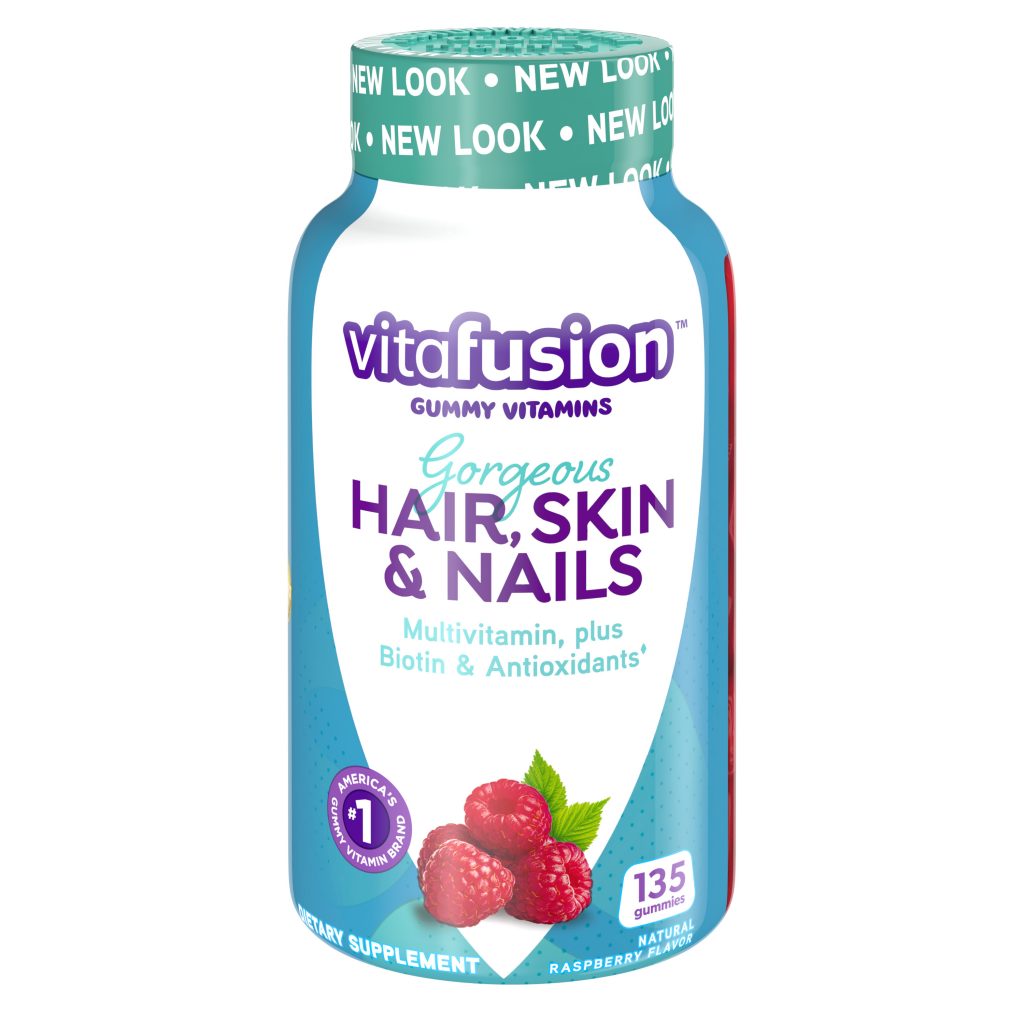 Vitafusion Gorgeous Hair, Skin and Nails is a great-tasting gummy multivitamin containing 12 key nutrients, including Biotin and Vitamins C and E to help nourish beautiful hair, skin, and nails from the inside out.